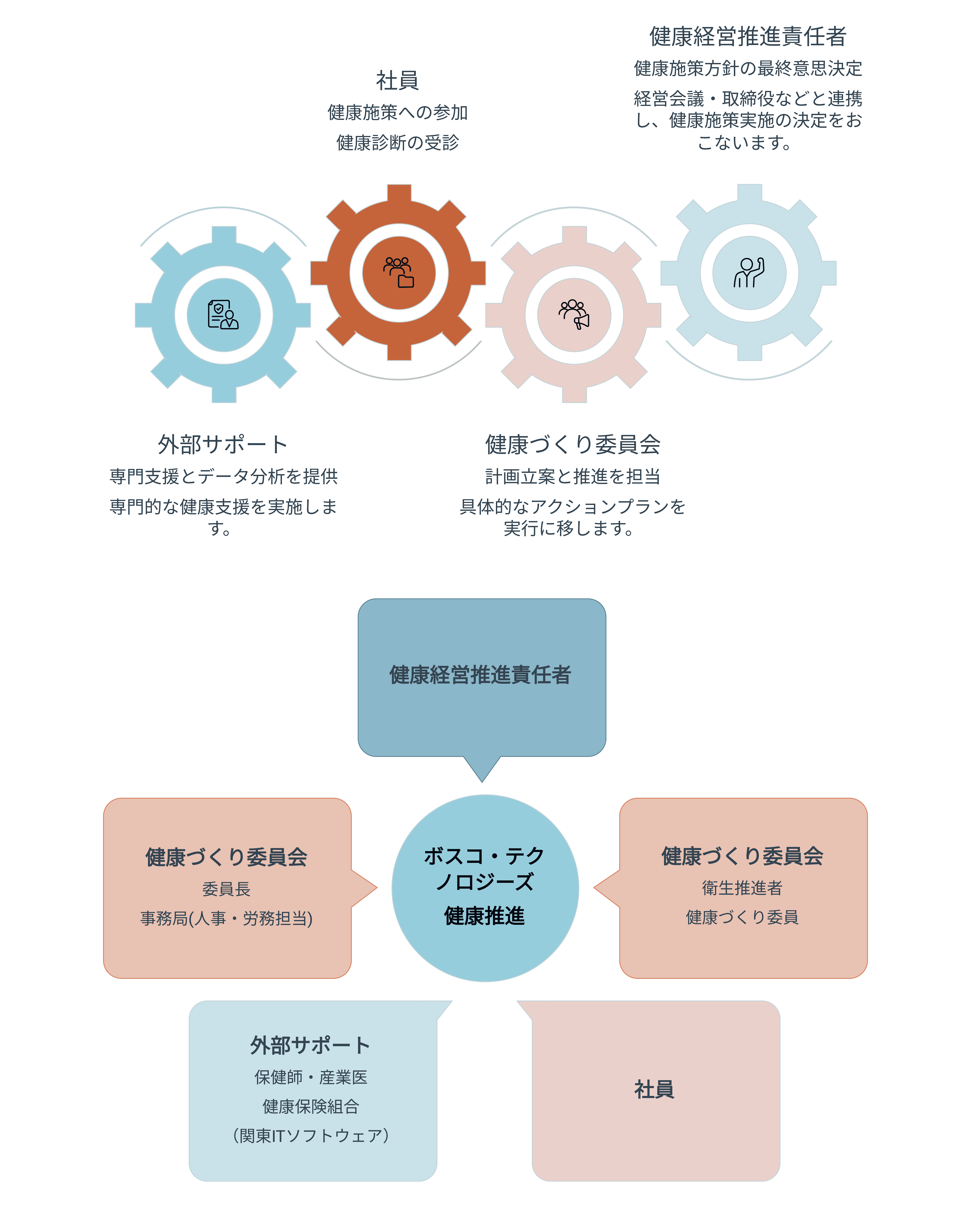 健康経営を重要な経営戦略の一つと位置づけ、社員とその家族の健康を支援し、いきいきと働ける会社を目指すことを宣言します。